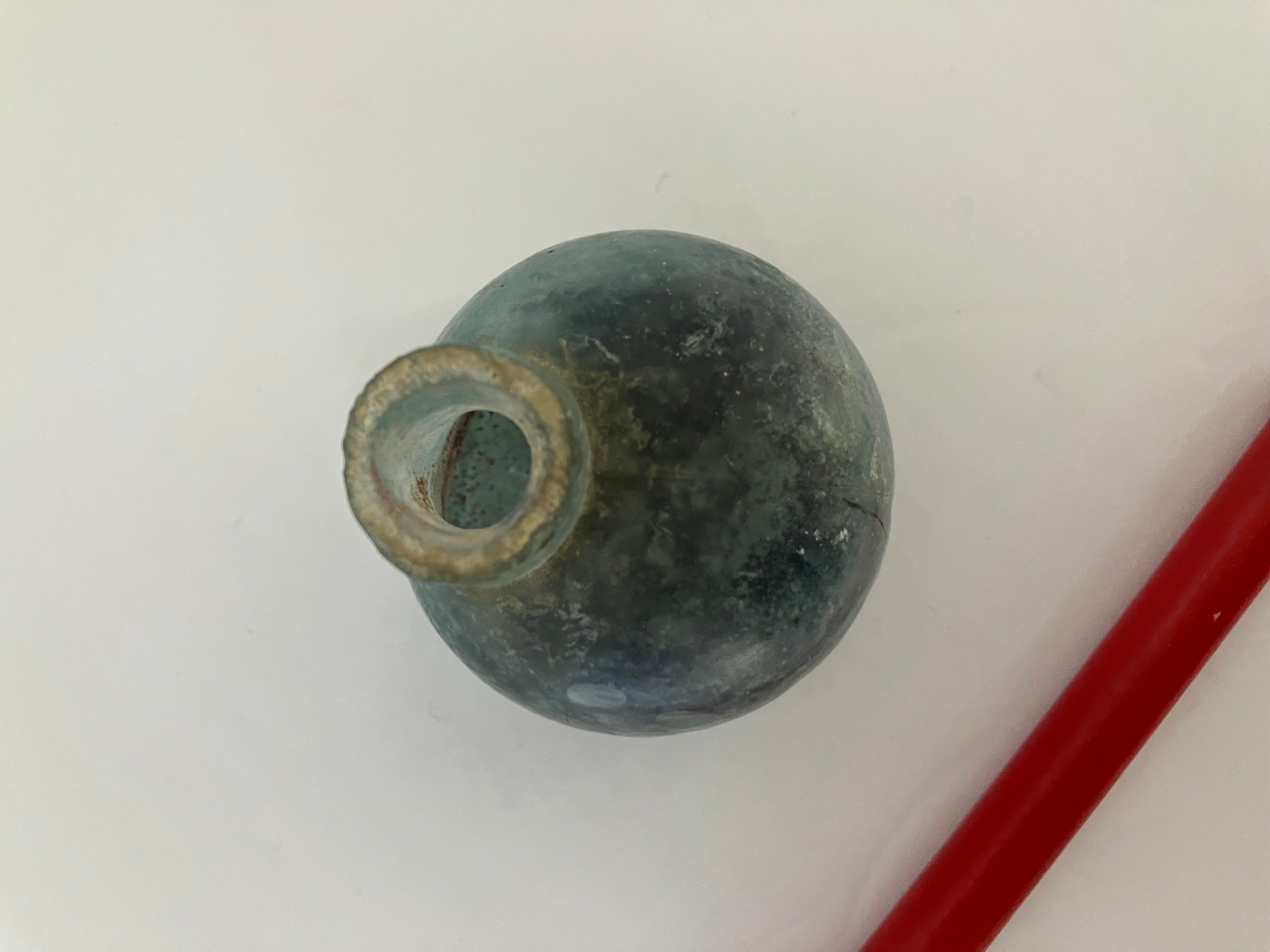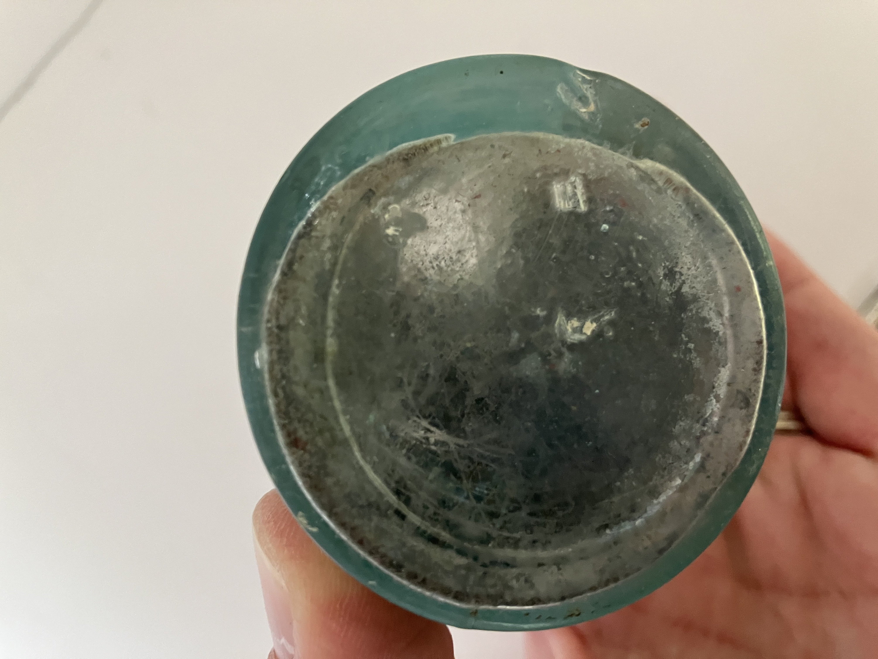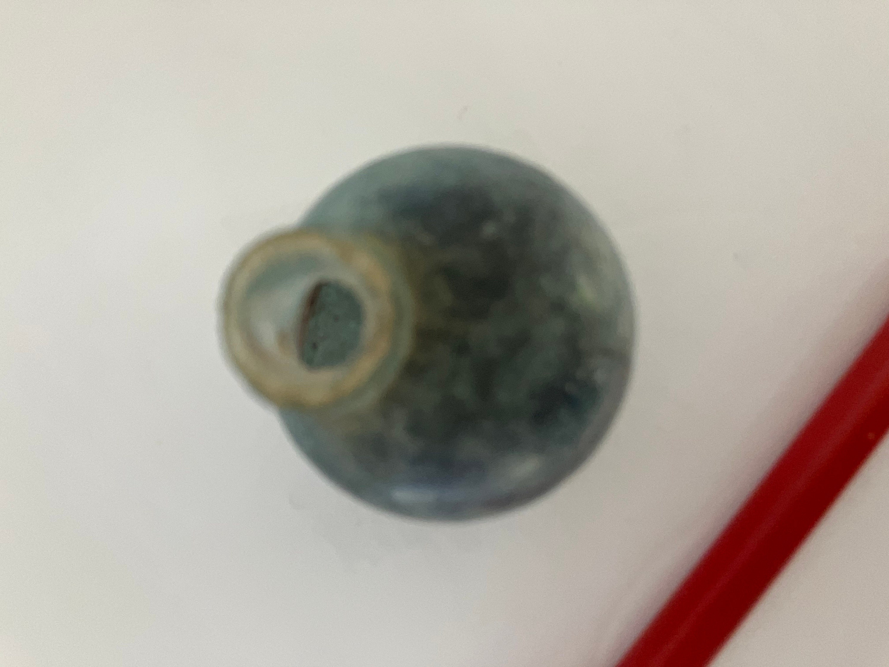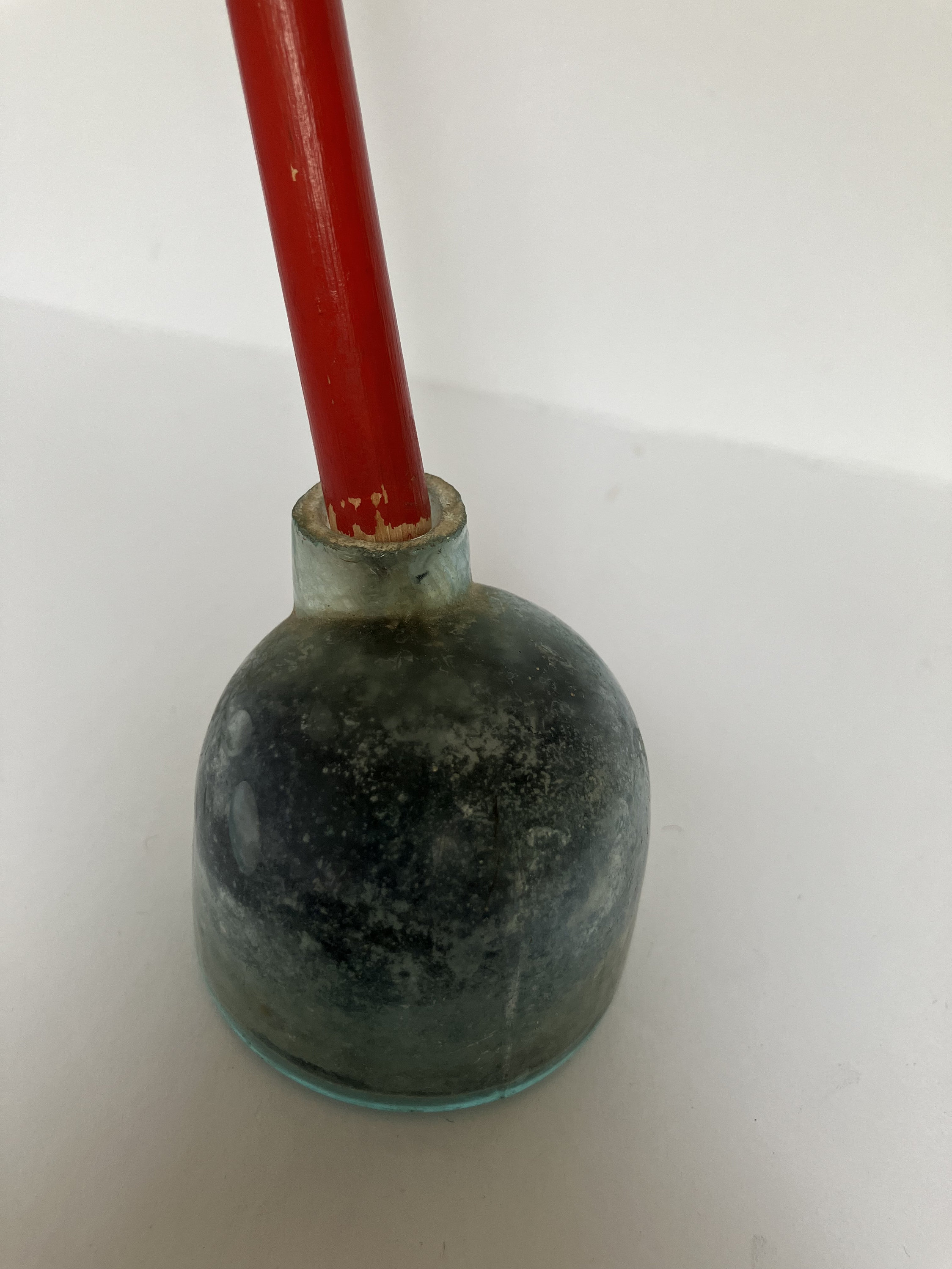 This listing is for an inkwell AND pen set. The inkwell/pen holder is antique blue-green glass. The pen is red wood with a Esterbrook Radio 912 pen nib.