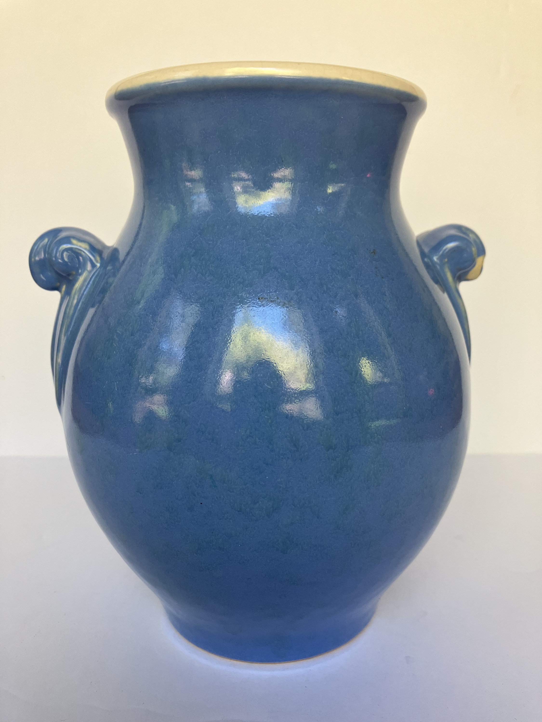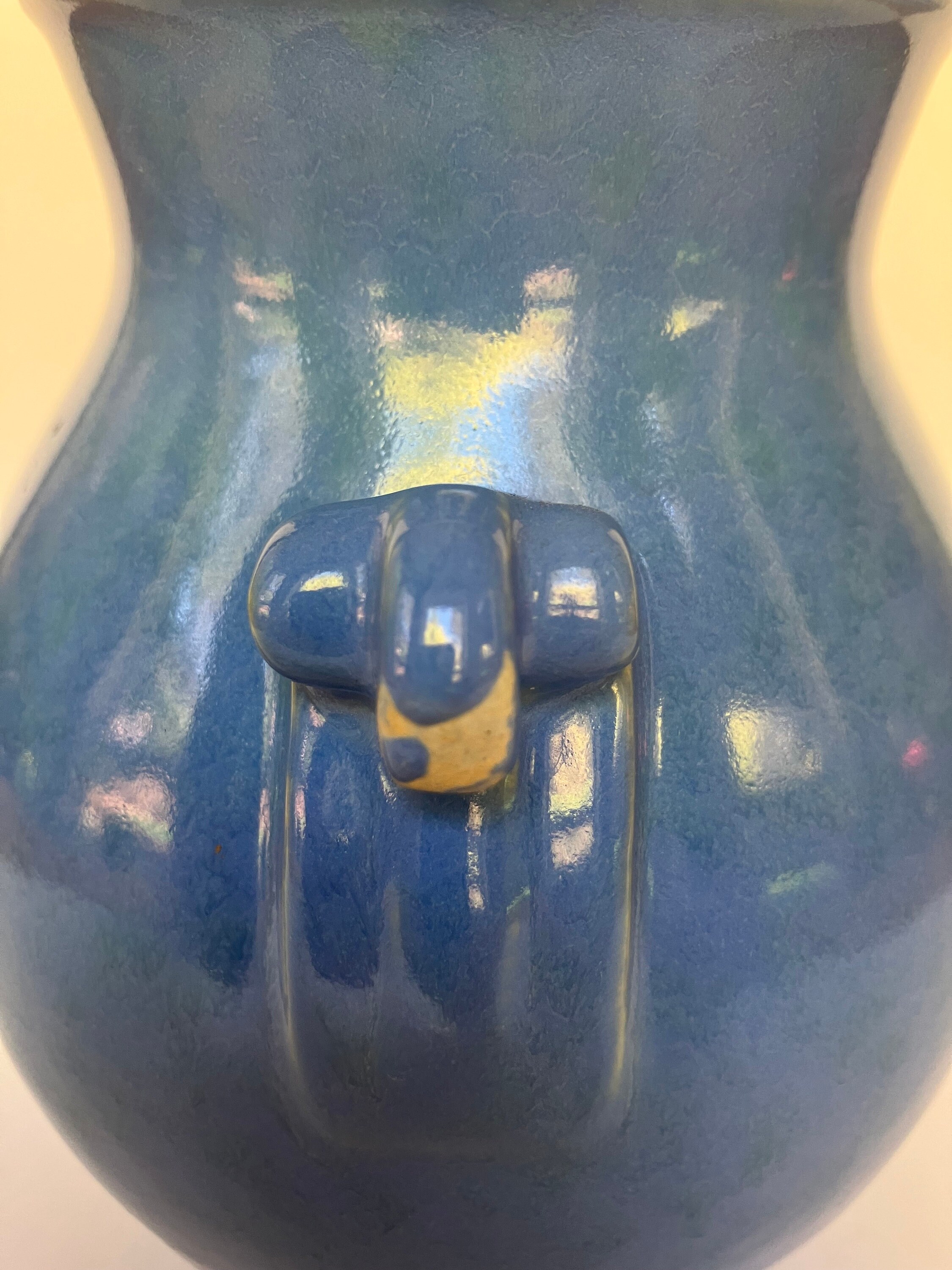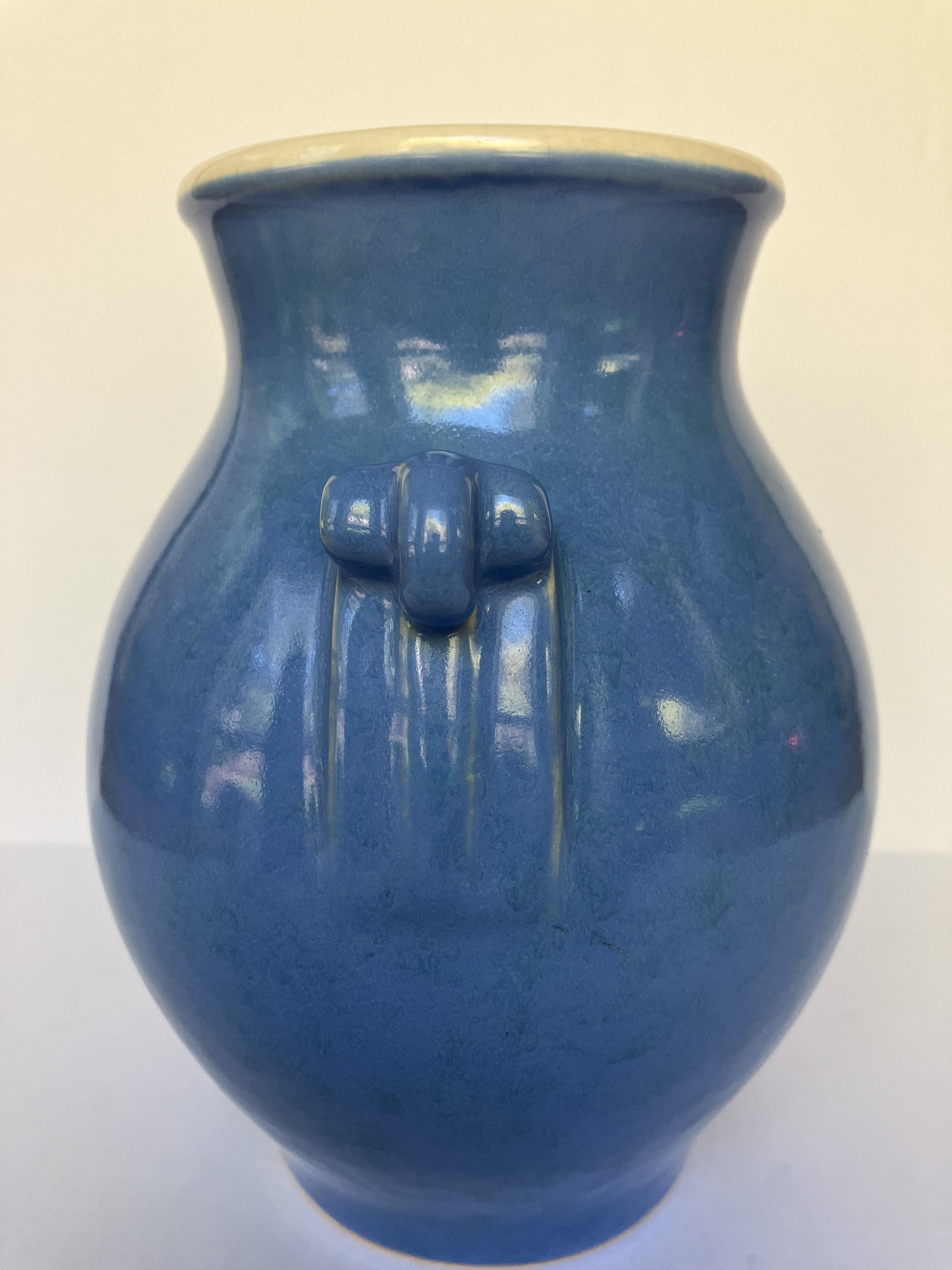 Condition: Very good, vintage condition. There is a flaw or irregularity in the glaze on one of the "handle" decorations on the side of the vase. I don't think it is a chip, just missing glaze. There is interior crazing. Please see photos and ask any questions prior to purchasing.