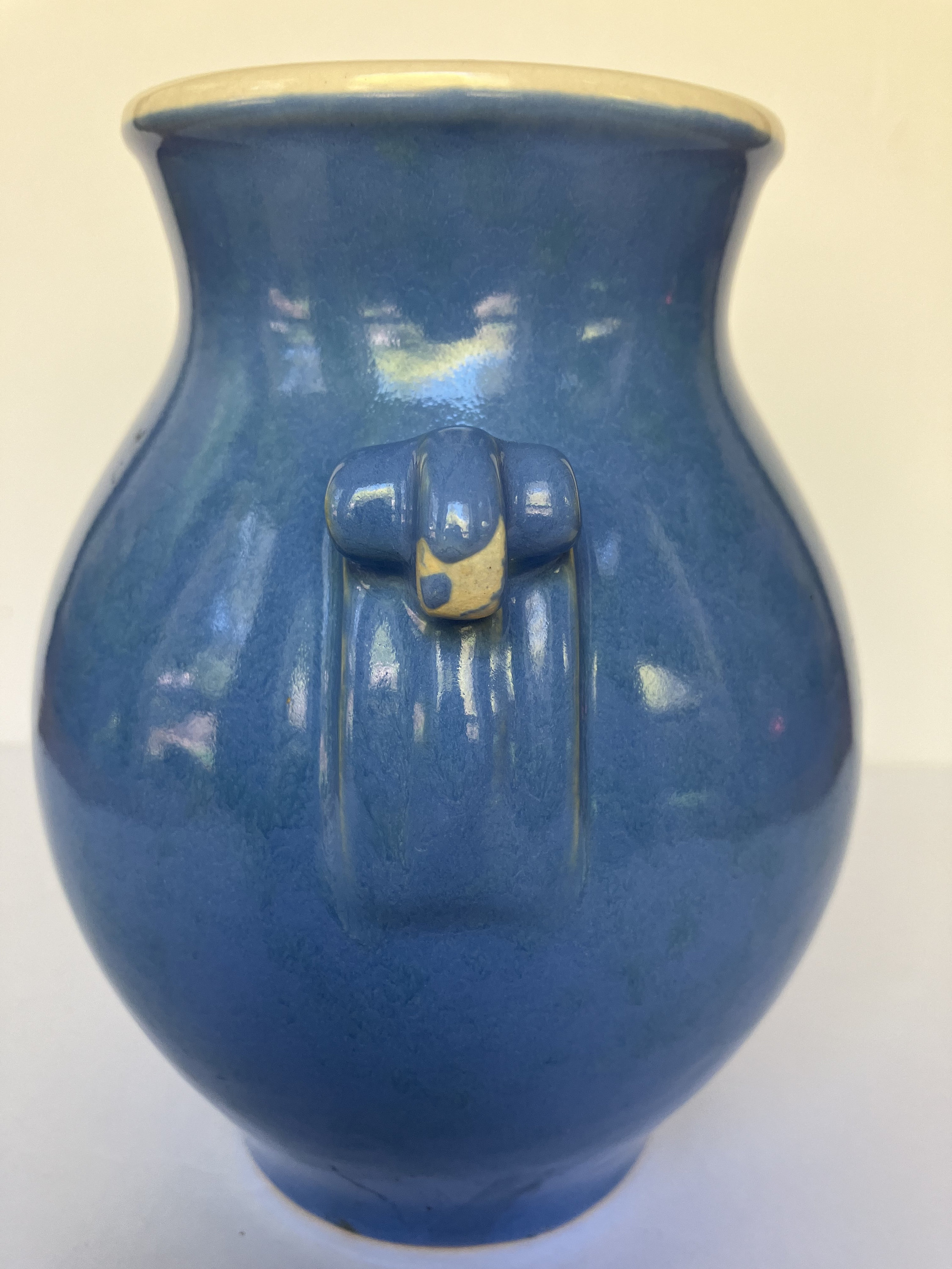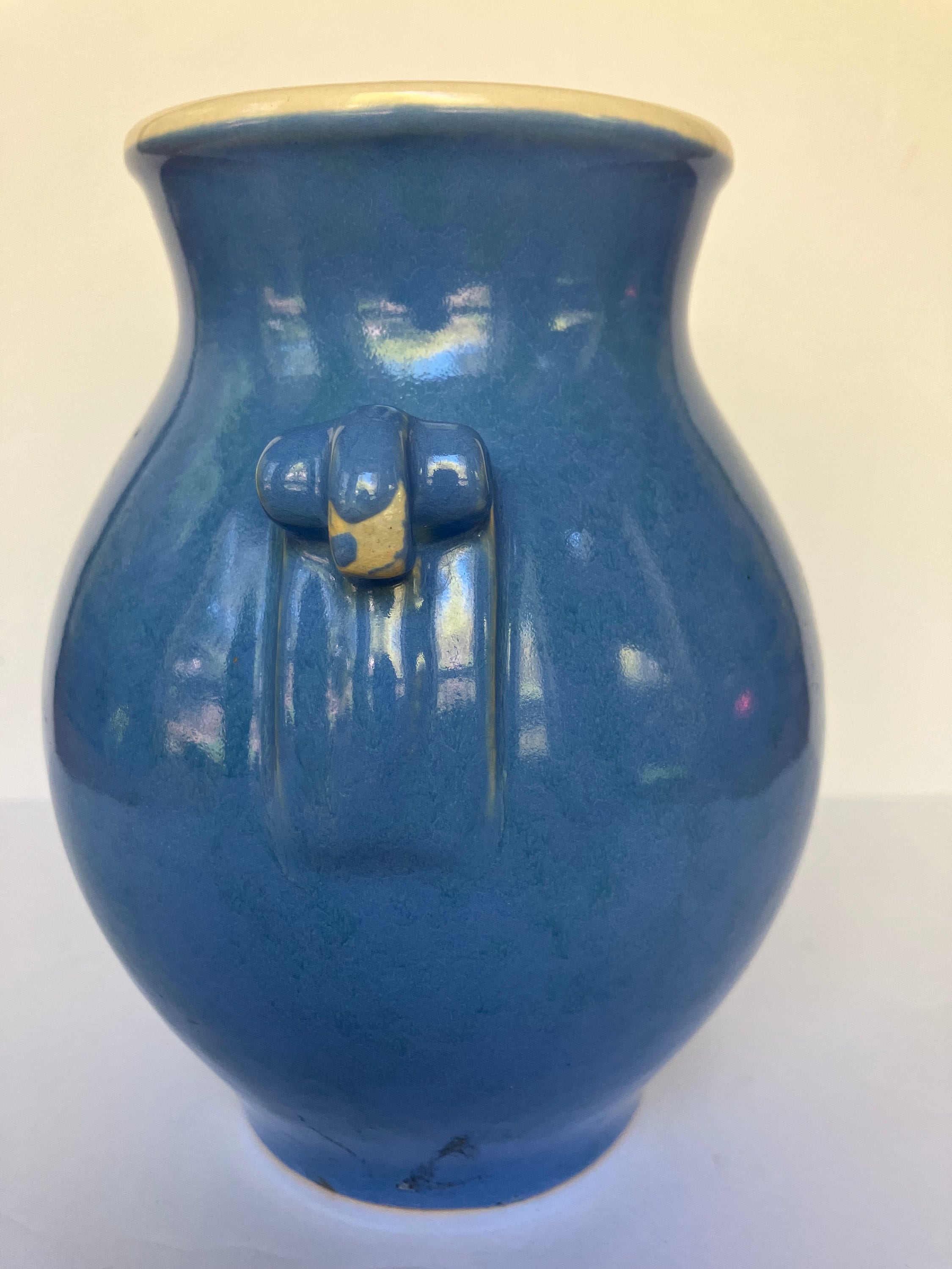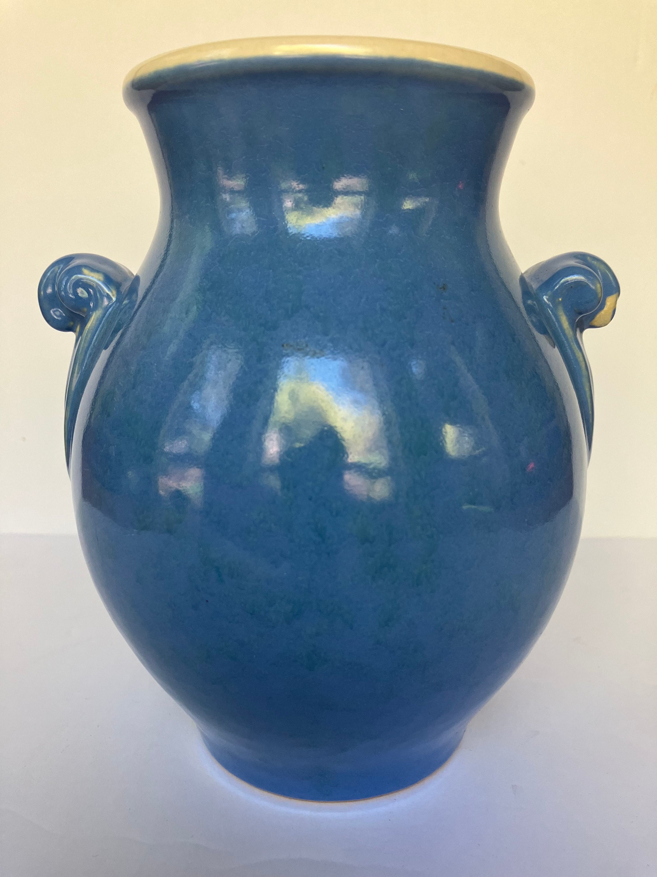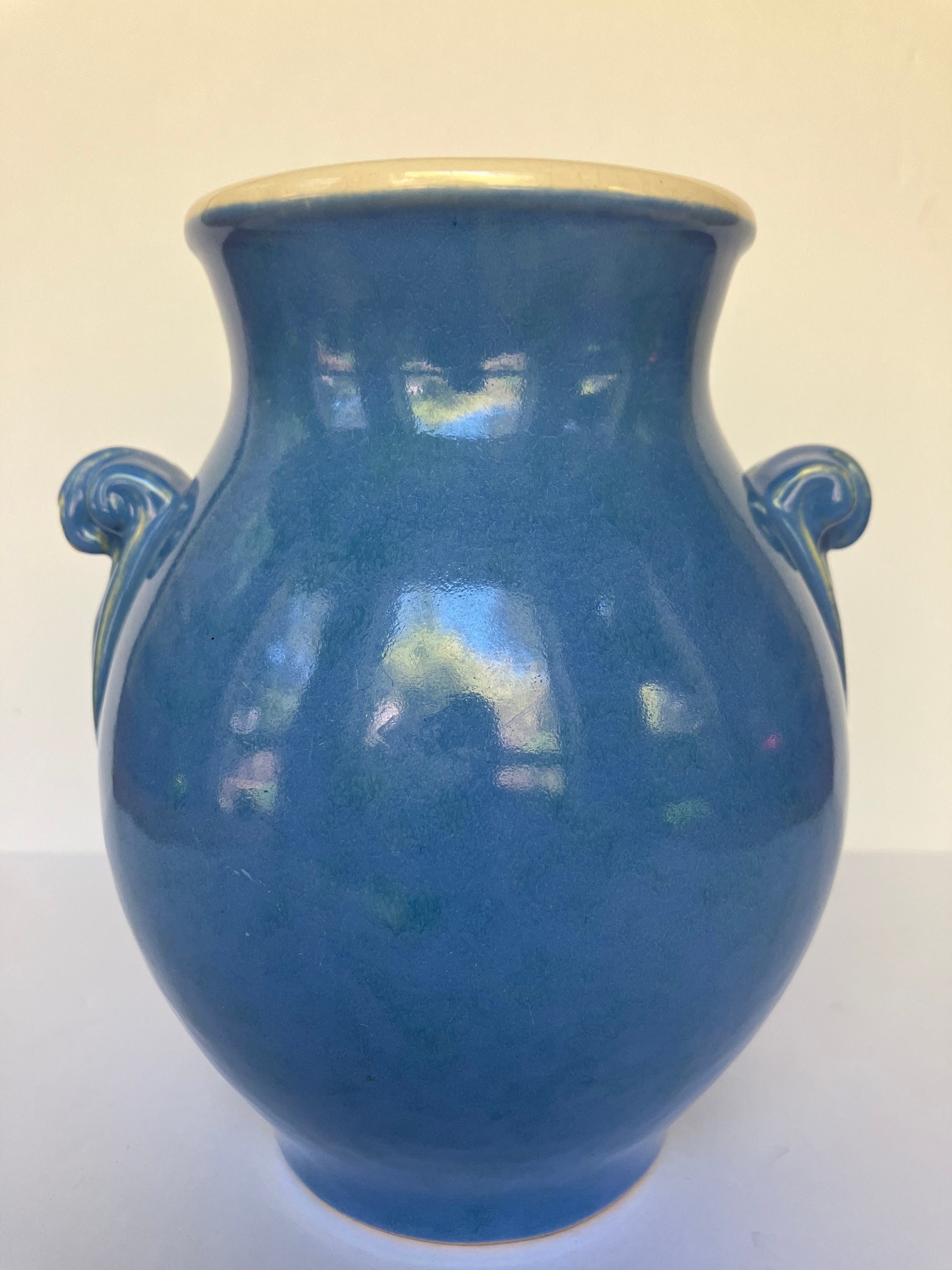 Condition: Very good, vintage condition. There is a flaw or irregularity in the glaze on one of the "handle" decorations on the side of the vase. I don't think it is a chip, just missing glaze. There is interior crazing. Please see photos and ask any questions prior to purchasing.