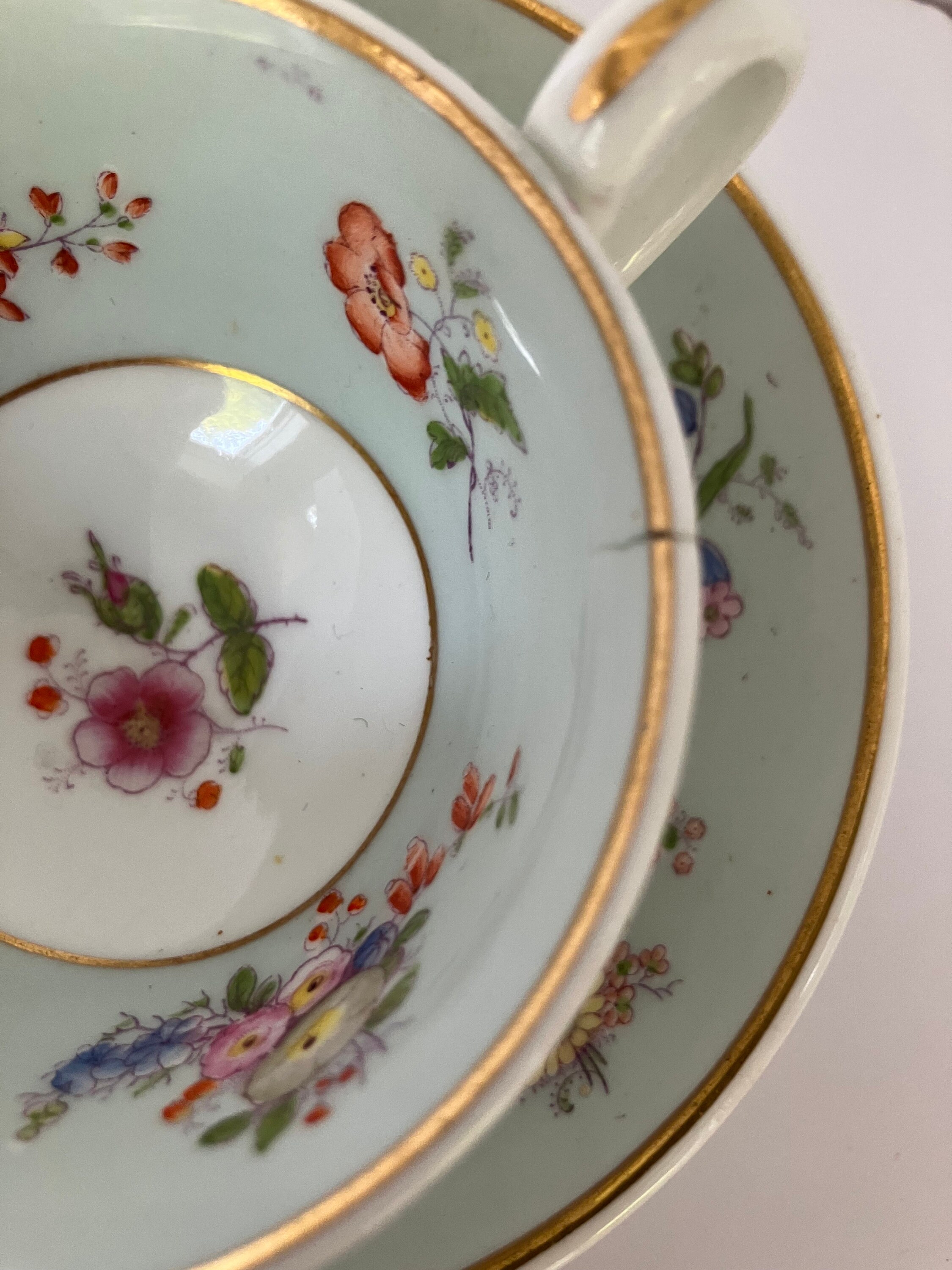 Condition: Good antique condition. There is a small crack on one of the cups (please see photos). It is very minor and may even be a factory flaw? Some staining to waste bowl (I have not attempted to clean). Otherwise light wear to gilding and decoration as to be expected for age. Please see photos.