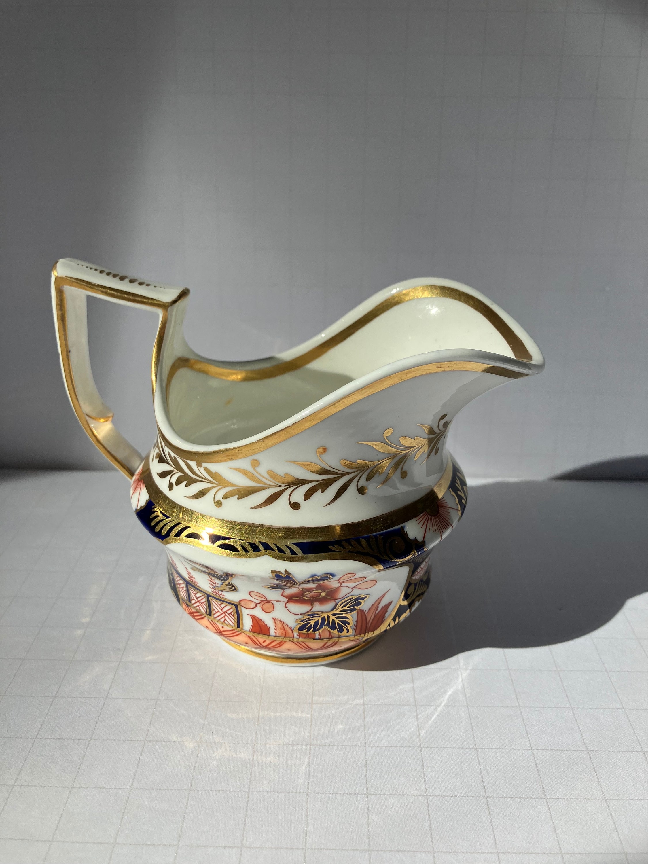 This listing is for a beautiful antique Regency era imari creamer or milk jug with gilded wreath trim. It is marked "Spode 3615" with a red-painted mark on the back. This red painted Spode mark was used late 1700s to early 1800s, to my understanding. The pattern number is 3615. It is in beautiful condition. Please see photos!