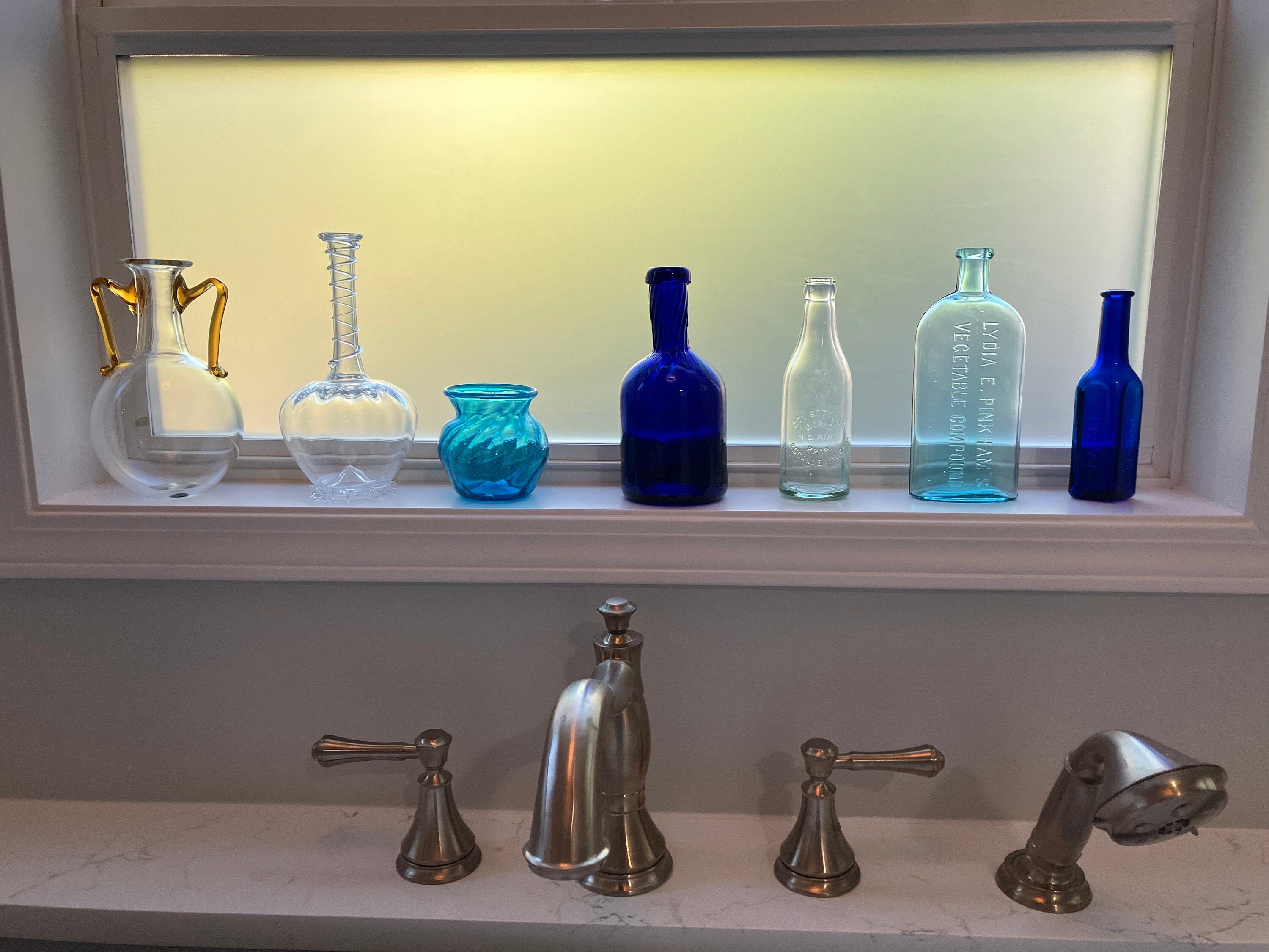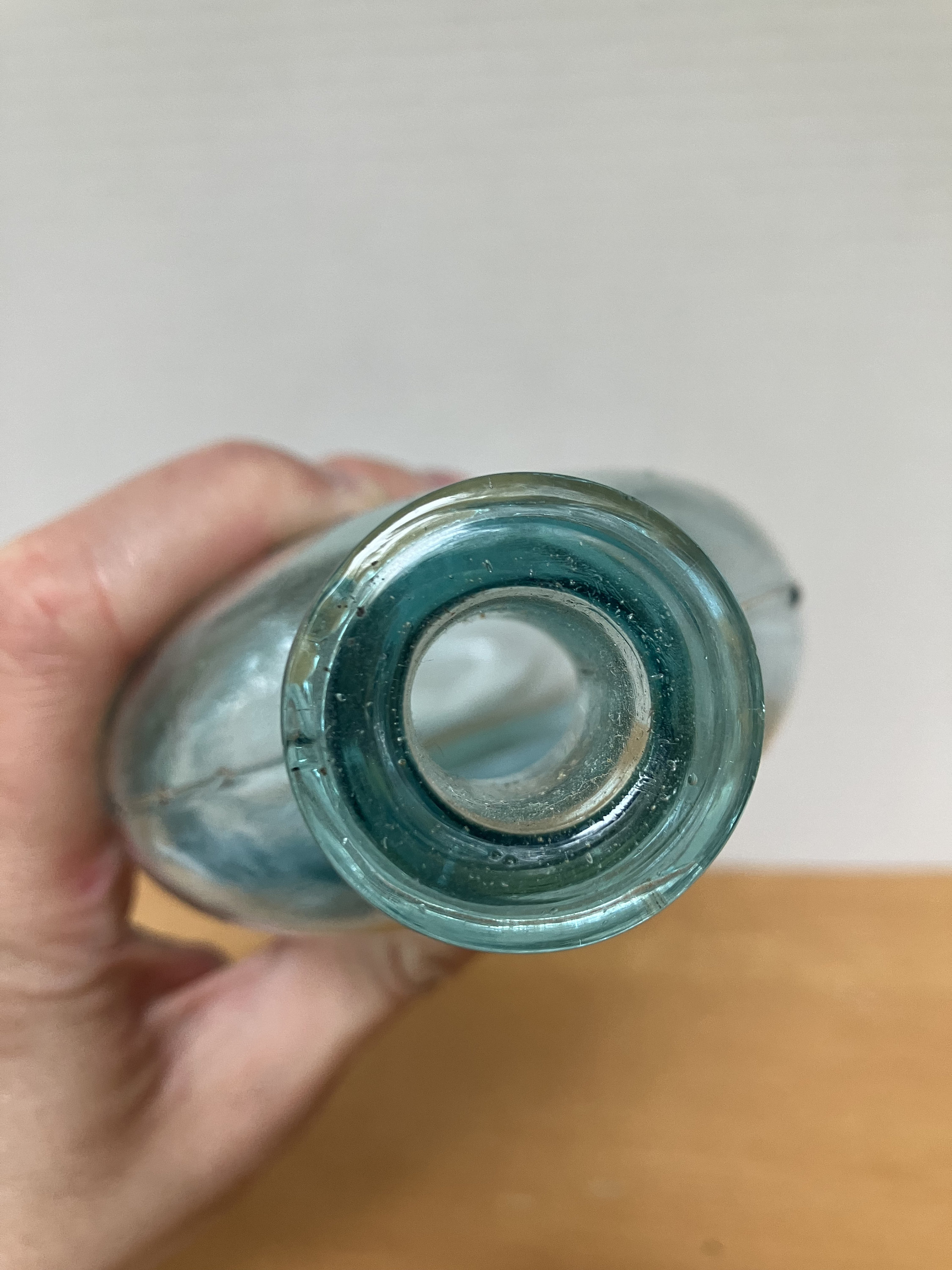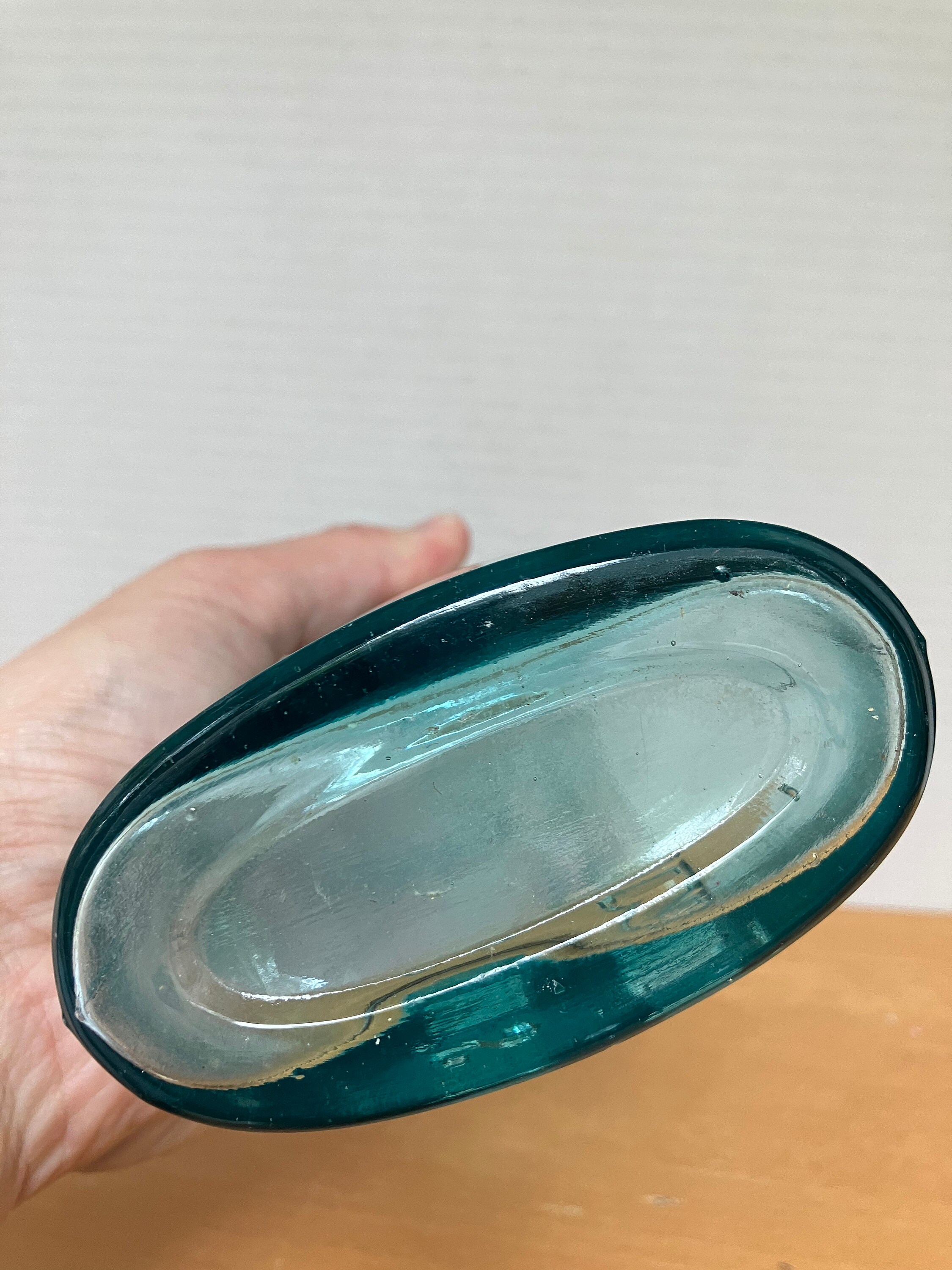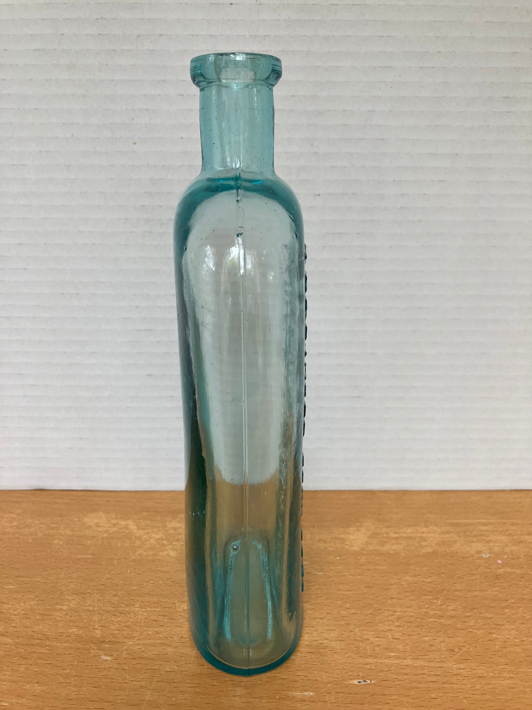 This listing is for an antique aqua glass medicine bottle. Text on bottle reads "Lydia E. Pinkham's Vegetable Compound."