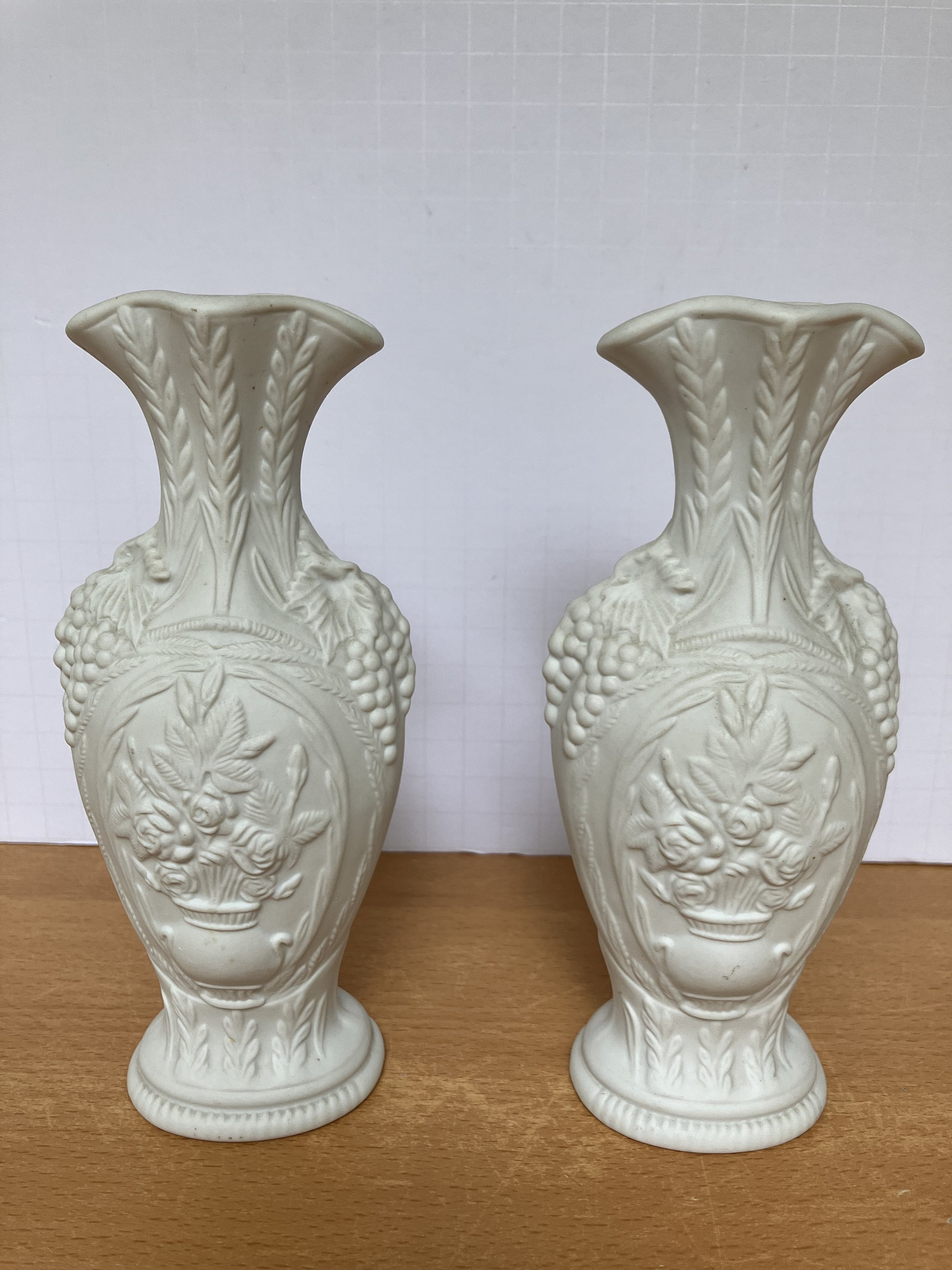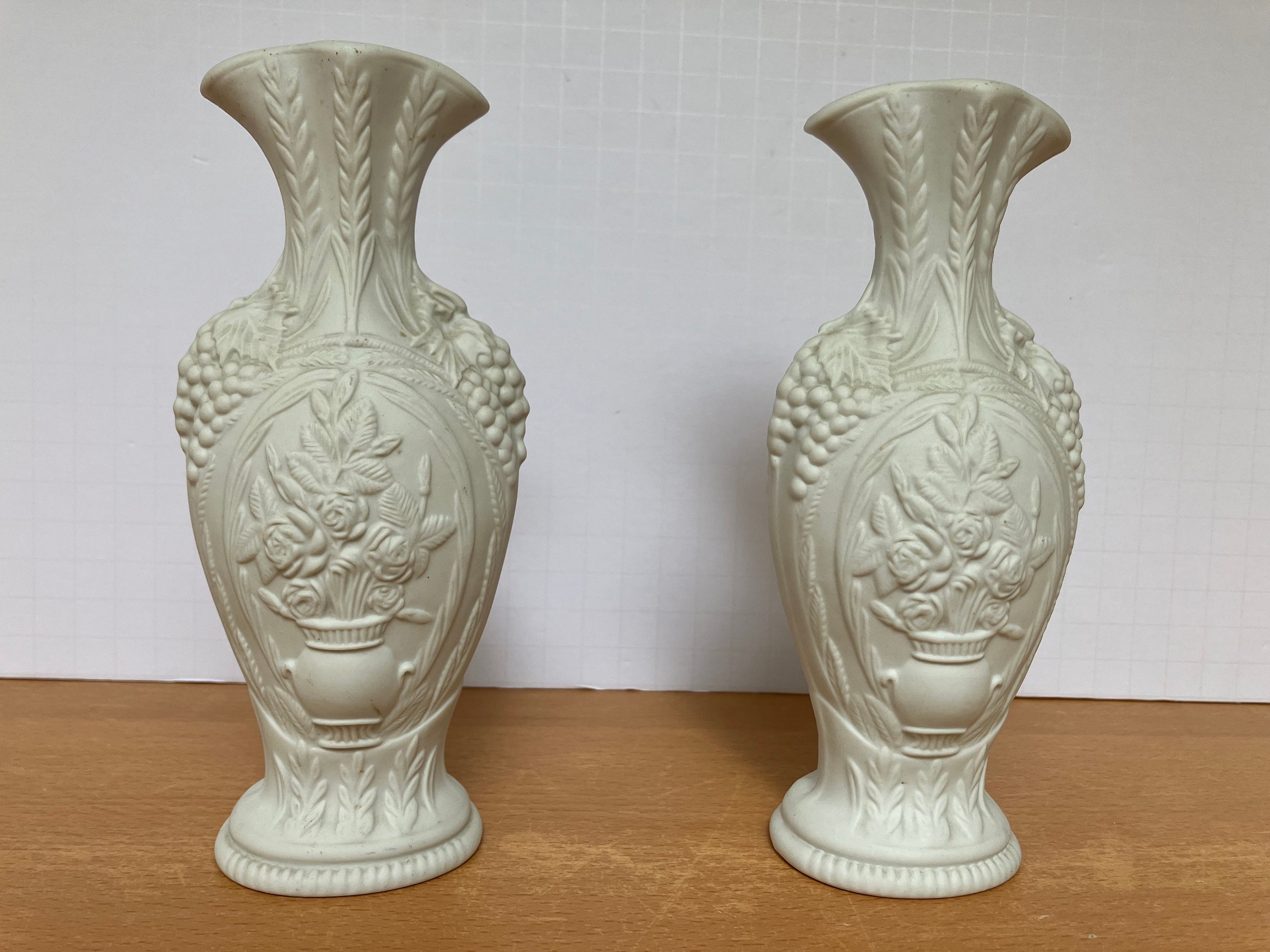 This listing is for a pair (two vases total) of Portmeiron Porcelain "British Heritage Collection" parian style vases.