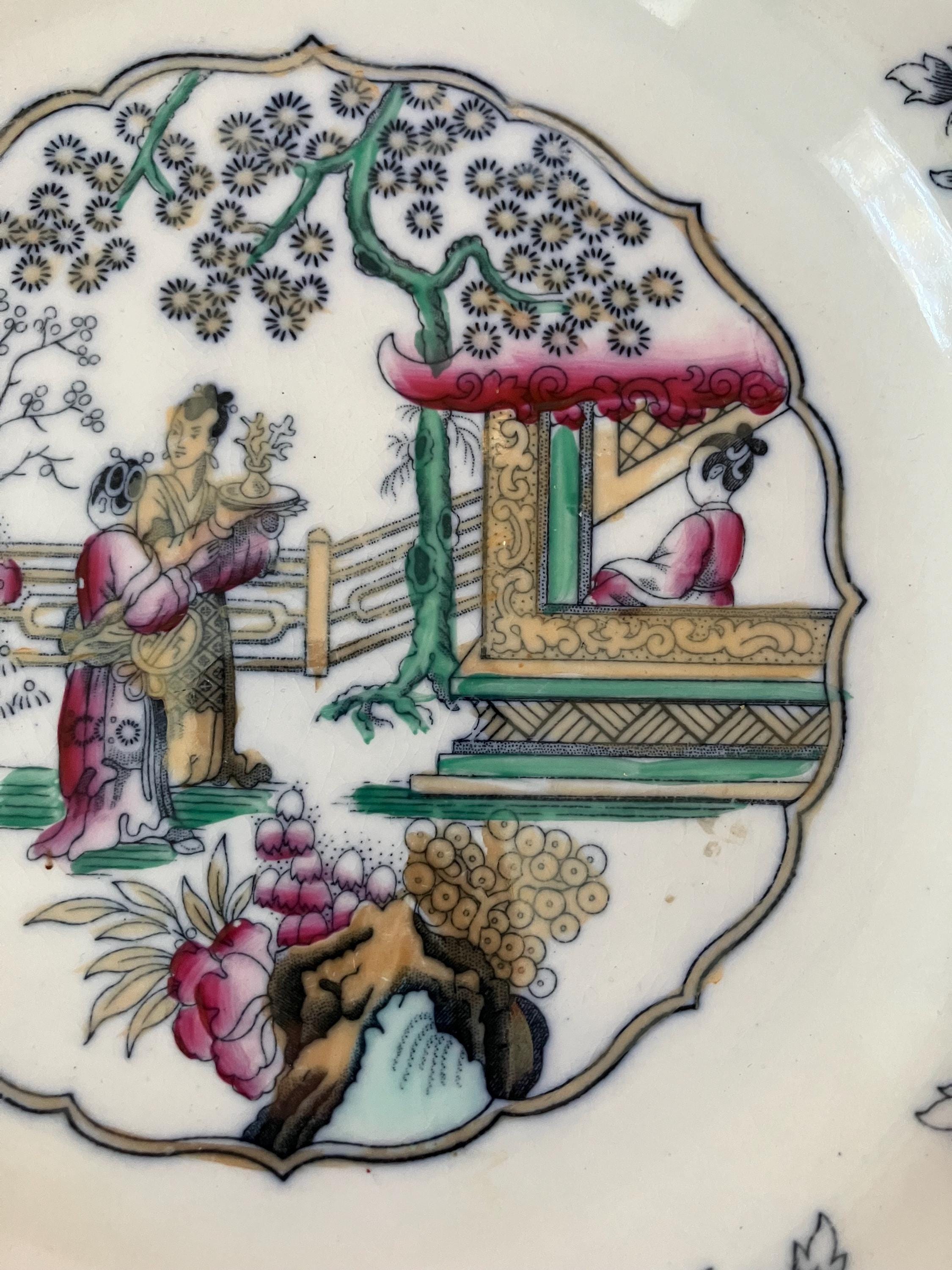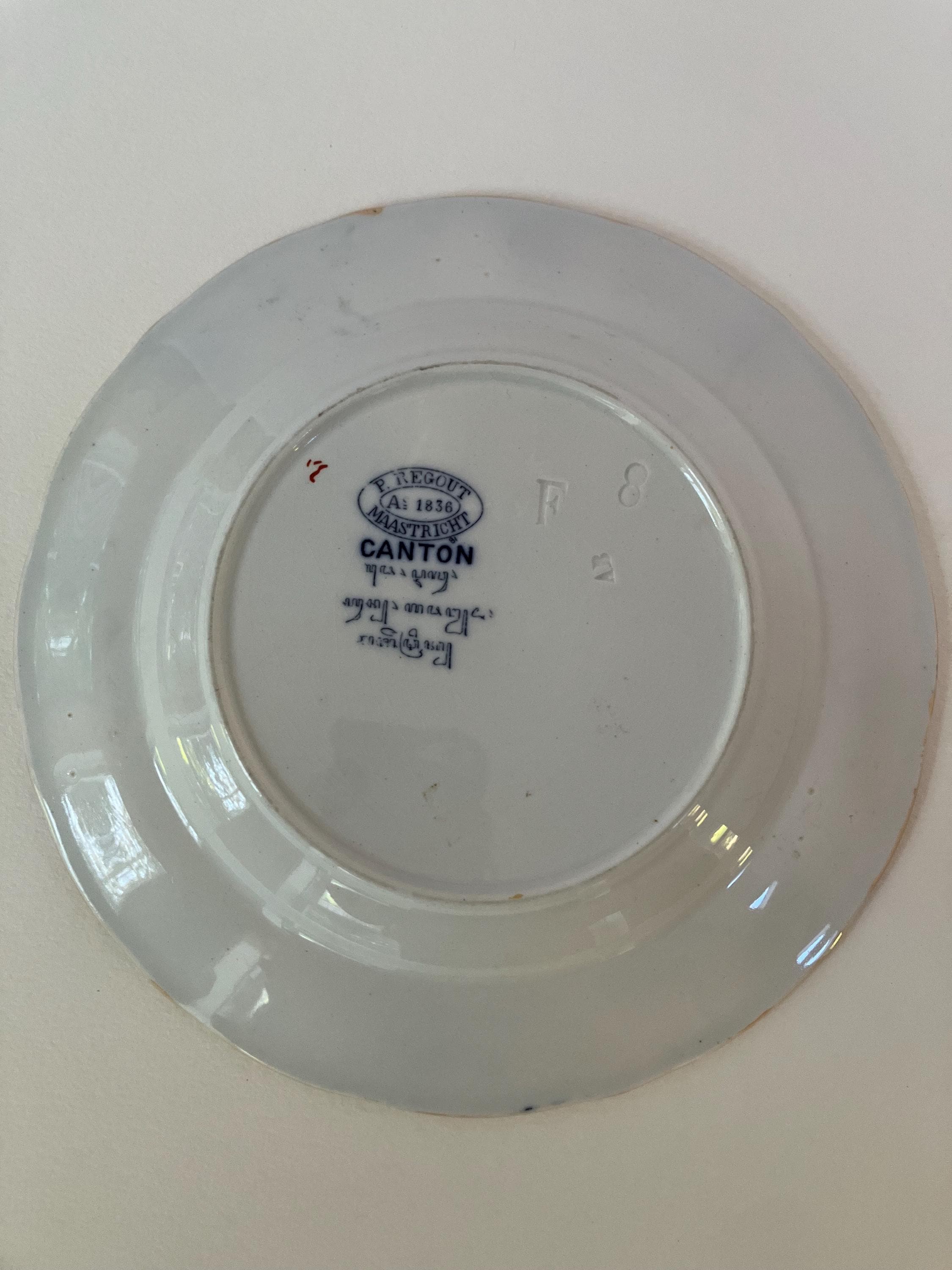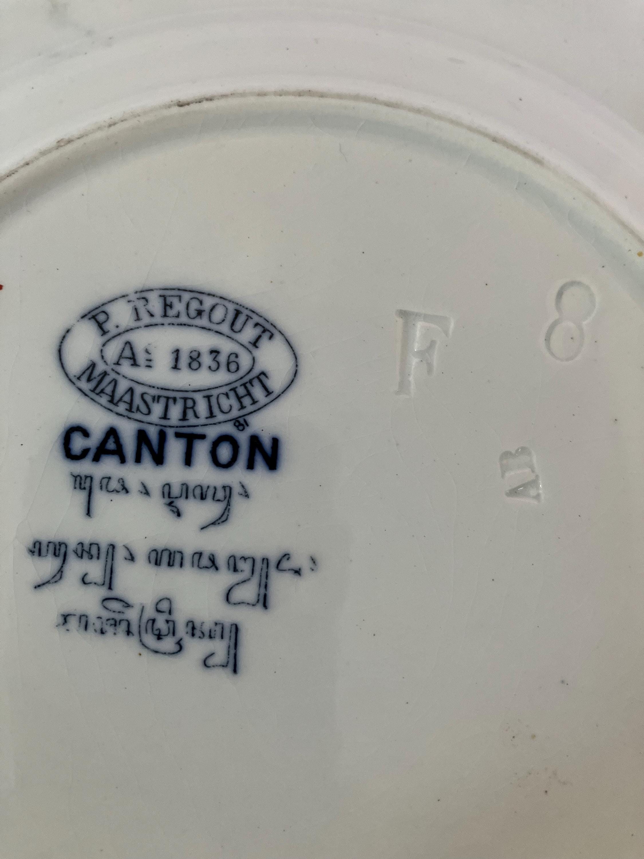 This listing is for an antique P Regout Maastricht Canton plate. It measures approximately 8.5 inches in diameter. Good, vintage condition. Some crazing and surface dirt.